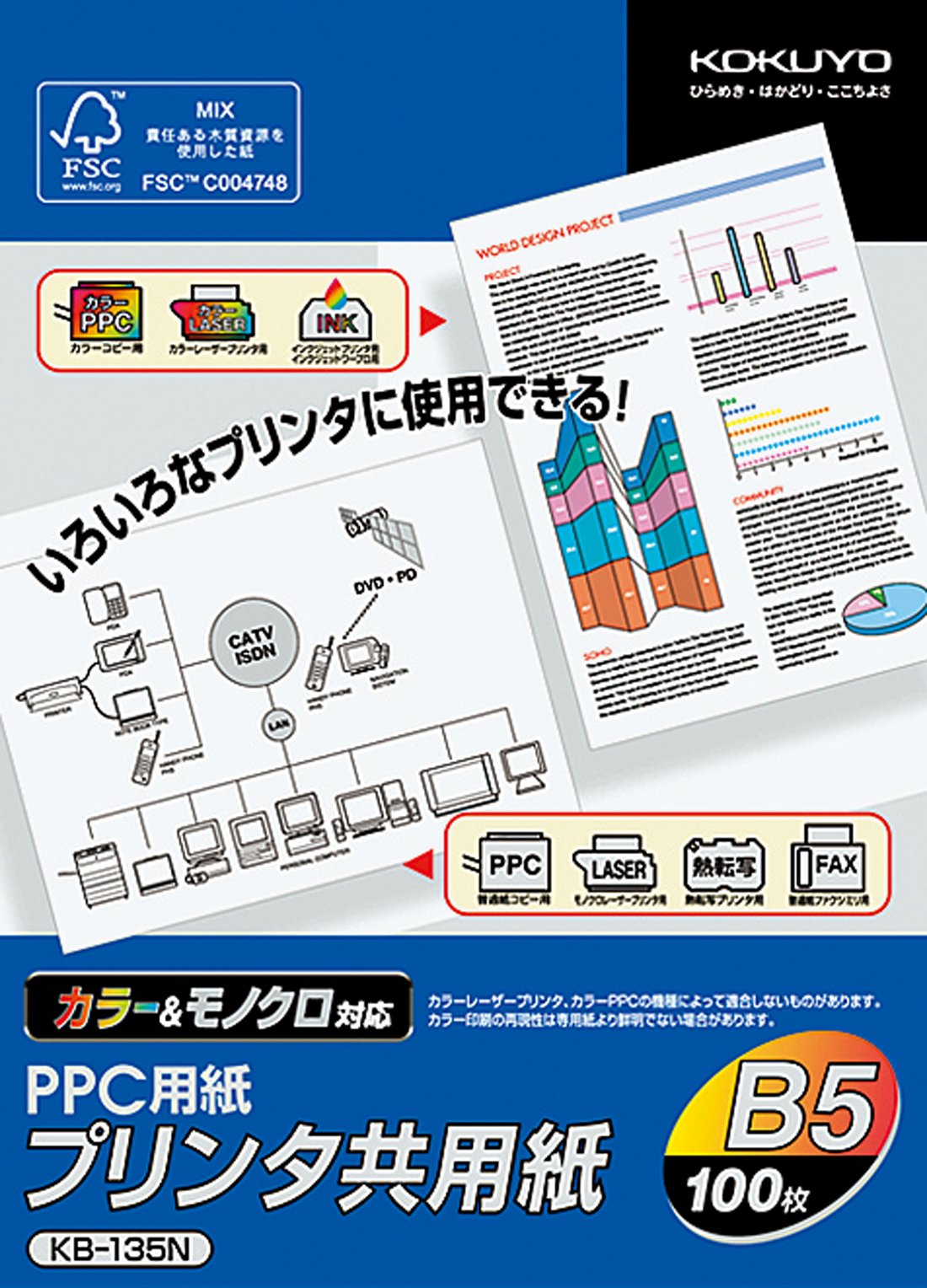Kokuyo printer both paper FSC certification B5 100 sheets KB-135N