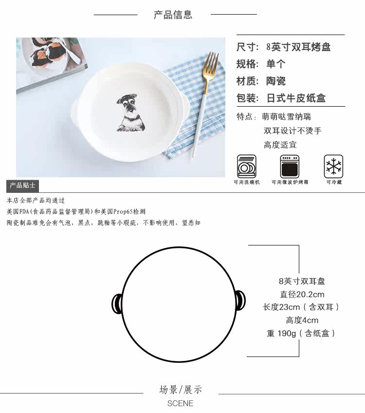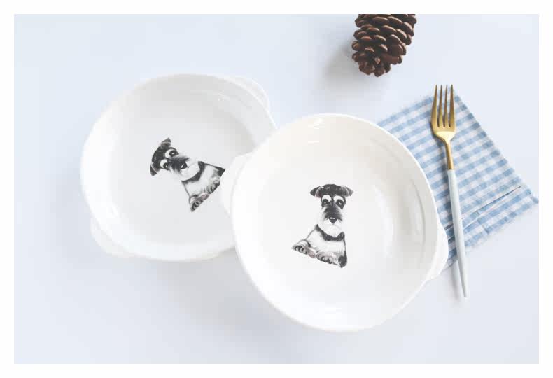 新款雪纳瑞系列陶瓷餐盘双耳焗饭烤盘家用厨房菜盘子可进微波烤箱