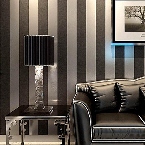 -. Title : Grey & Black Stripe Non Woven Wallpaper for Living room Bedroom, 20.8 In*32.8 Ft=57 Sq.ft