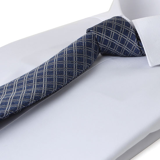 네이비바탕에 화이트체크가 멋스러운 슬림넥타이