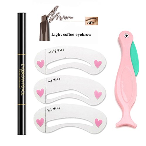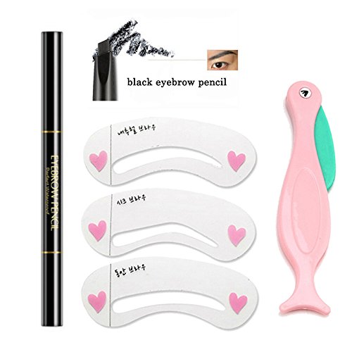 -. Feature : 1. Natural Eyebrow Pencil, Long-lasting,waterproof,sweatproof; Automatic Eyebrow Pencil with Brow Brush. / 2. Eyebrow Stencil Card combine with 3 Type Eyebrow Painting Templates. / 3. Lovely Bird Shape Eyebrow Trimmer. / 4. This set is simple and easy using for eyebrow makeup / 5.You can easily makeup your brow with the brow template and the brow pencil.