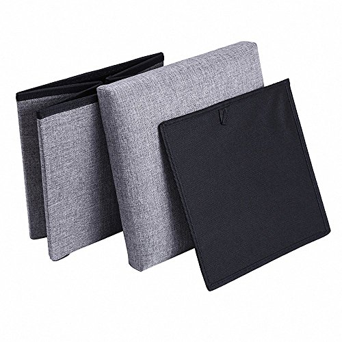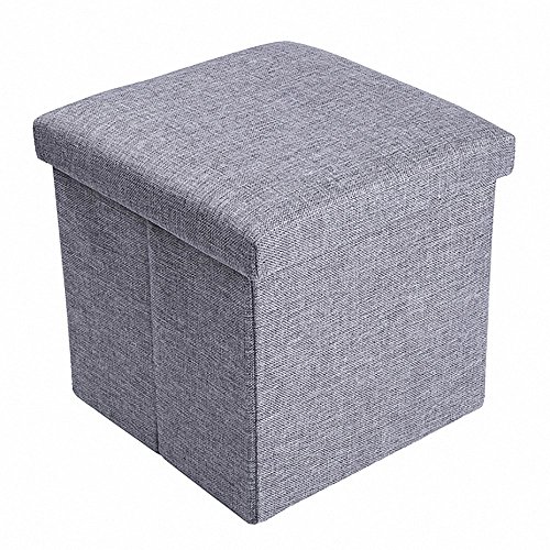 Storage Ottoman Fabric Linen Folding Stool,Collapsible 15" Cube ,Foot Rest Seat,Clutter Toys Collection Gray