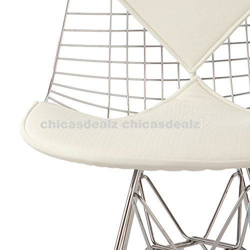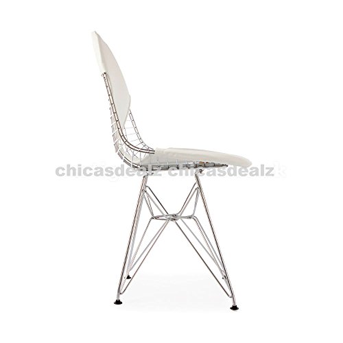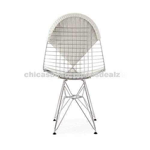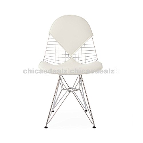 - Title : Mid Century Modern Eames Style DKR Chrome Wire Side Dining Chair with White Bikini Seat & Back Cover