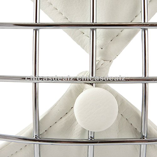 - Feature : Mid-century chrome design looks great and is surprisingly comfortable / Bikini style faux leather seat pad look fantastic and offer added comfort / Seat & base is made from chrome steel. / Minor self-assembly is required. High quality reproduction of original. / Measurements: 34.2" H x 19.2" W x 18.5" D - Seat height is 17.7"