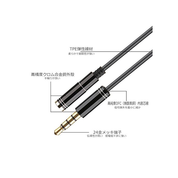 원본상품명: ヘッドホン延長ケブル ARCHEER PROFESSIONAL CABLE 1.5Mステレオオディオ延長ケブル ヘッドホン延長コド 標準3.5mm 4極 オス-メス ヘッドホン、iPod、iP