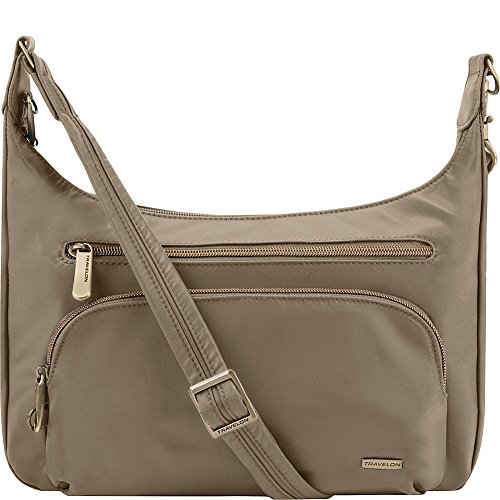 Travel safe with your everyday essentials organized. This polished Travelon handbag is designed for security with RFID protection, slash resistant body and shoulder straps.