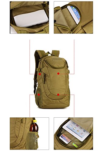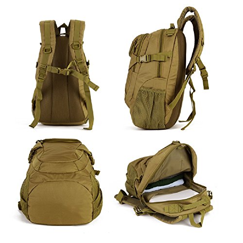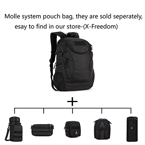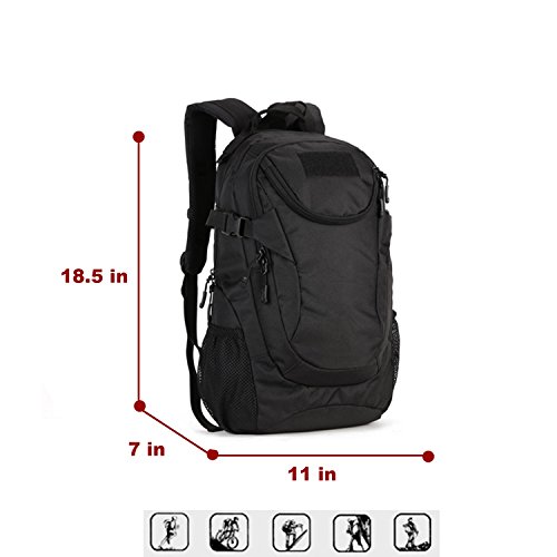 -. Feature : Modern Casual Military design using Oxford Nylon material, scratch-resistant, not easy to fade, durable tactical backpack, rucksack bag, shoulder bags. 20/25L Capacity / This tactical backpack was impervious to light rain, it will not rot in the water; Metal+Lengthen the rope pull zipped head. The closure is zip and buckle / Dimensions: 11"W x 18.5"H x 6.3"-7.5"D, It's a good choice for 14" laptop and A4 magazines, purse, wallet, water bottle and keys, camera, ect daily supplies / It's the MOLLE system bag, you can easily load on other equipment that pockets, water bottle bag, accessory kits and other / Perfect for indoors and outdoors: Running, Travelling, Camping, Hiking, Hunting, Cycling, sports, School Supplies, Tools, Etc. If you have any problem, please contact us, we will try our best to help you