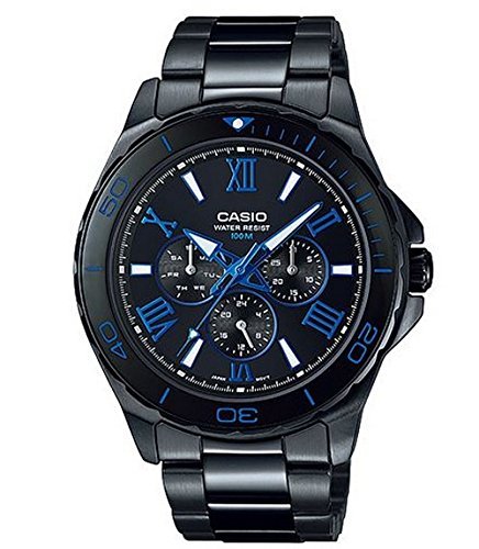 -. Title : Casio MTD-1075BK-1A2 Men's BLACK Stainless Steel Dress Watch 100M 3-Dials