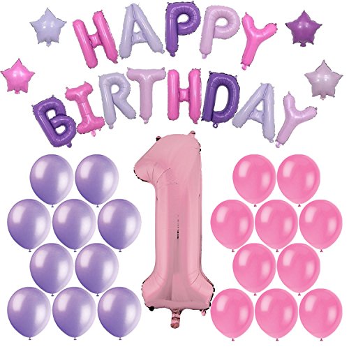 -. Binding : Toy -. Brand : HeroFiber -. EAN : 0701980332456 -. Feature : 34 Inch High Inflatable Number 1 Pink Mylar Balloon. Floats in helium / 16 Inch high letters of "HAPPY BIRTHDAY" and four stars in shades of pink and purple - Includes straw to inflate and strings to hang. Can also be attached to wall with tape - THESE DO NOT FLOAT WITH HELIUM - ONLY THE "1" AND THE LATEX FLOAT / 10 pink and 10 purple 12 inch latex balloons. / Perfect for a one year old birthday party. 1st birthdays are a celebratory event, we all want to make it as decorative as possible and with this balloon and banner pack you will be covered. Enjoy the birthday. -. Label : HeroFiber -. Manufacturer : HeroFiber -. MPN : 701980332432 -. PartNumber : 701980332432 -. ProductGroup : Toy -. ProductTypeName : TOYS_AND_GAMES -. Publisher : HeroFiber -. Studio : HeroFiber -. Title : First Girls Birthday Party Balloon Decorations: Includes Huge Inflatable Pink "1" + Foil Balloon Happy Birthday Banner + 20 Latex balloons - All In Pink and Purple Colors -. UPC : 701980332456