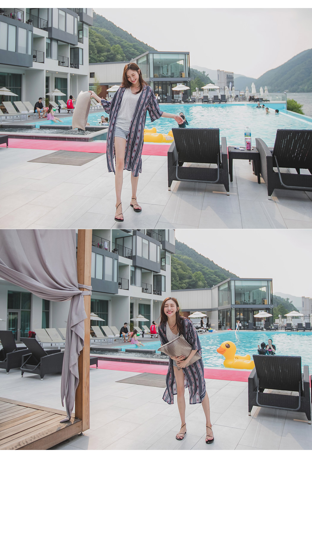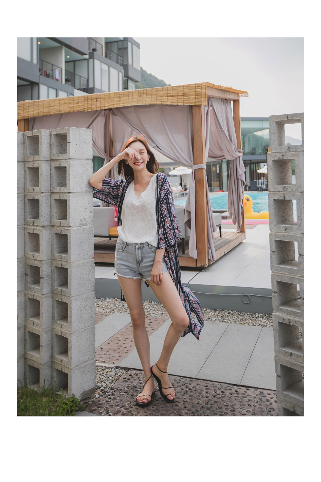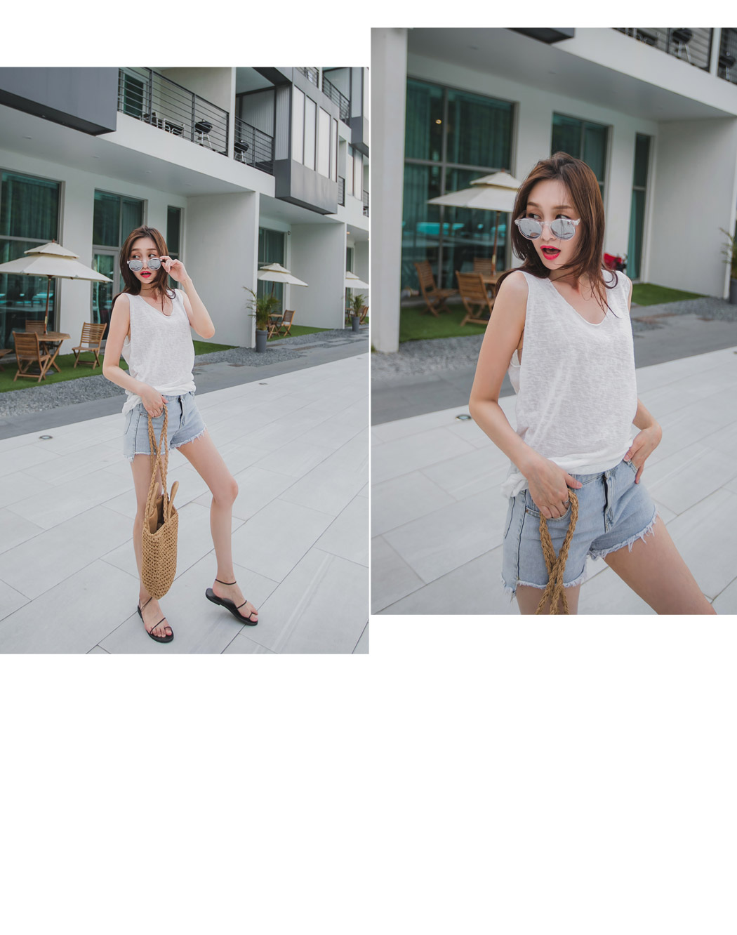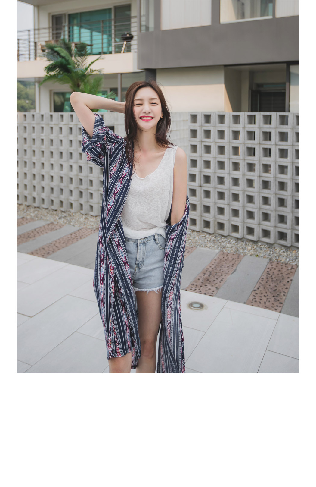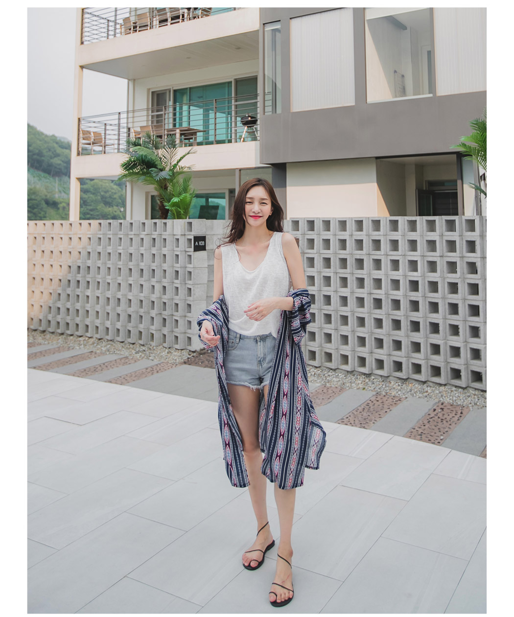 모델컷과 같이 데님팬츠와 나시위에 포인트 있게 연출해주셔도 이쁠것같아요:)