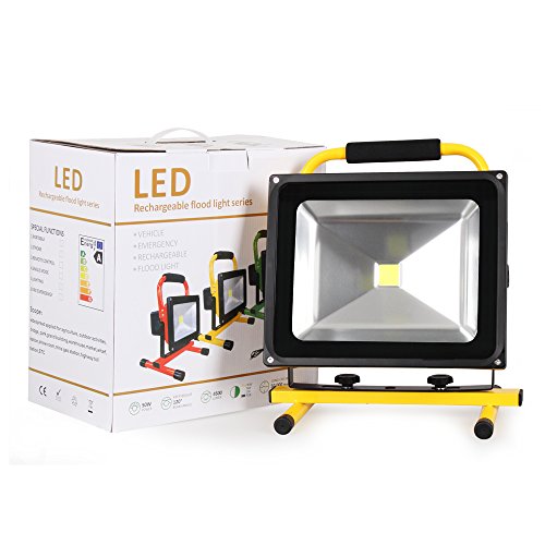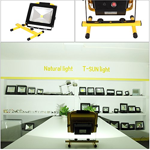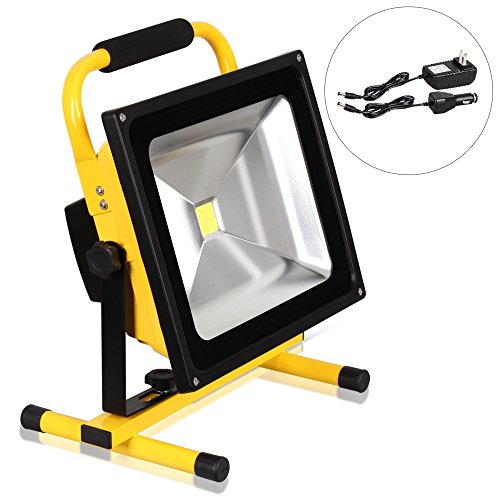 T-SUN 50W LED Rechargeable Portable Work Light, Waterproof LED FLood Light, Security Emergency Lights with Adapter & Car Charger Included, for Ourdoor Camping Fashing, Fishing, Working