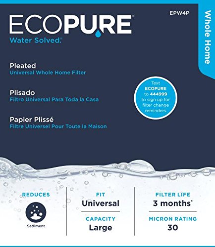 -. Feature : Premium filtration: Certified to reduce sediment, sand, dirt, and rust down to 30 microns / Protect your water supply, water using appliances and plumbing fixtures from harmful contaminants / Three-month filter life - for best filtration results replace your whole home filters every three months / Fits most major brand filter housings including: Whirlpool, Omni, Culligan, Filtrete, 3M, GE, DuPont and most other brands / Text ECOPURE to 444999 to sign up for filter change reminders. Questions? Call the EcoPure helpline at (800) 693-1138.
