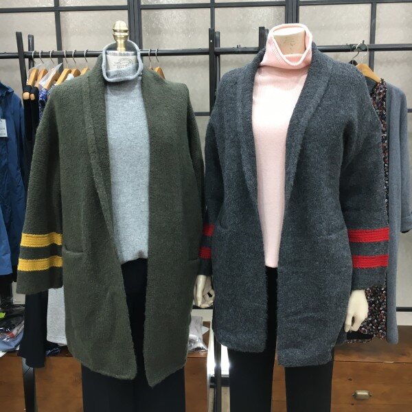 톡톡하고 두툼한 두께감으로 세상 따뜻한 가디건 소개해드려요~ 바디선을 따라 아방하면서도 루즈하게 떨어지는 핏이 이쁜 가디건인데요 . 알파카와 캐시미어가 함유되어 짜여진 도톰한 두께의 니트지로포근하면서도 따뜻하게 입어지구요. 넉넉한 품과 힙을 가려주는 기장감이 체형을 커버해주어 부담없이 손이 가실꺼에요. 소매에 배색줄무늬라인으로 포인트 주어 캐쥬얼한 느낌도 물씬 나는 제품이에요. 데일리하면서도 포인트 주기 좋은 색감과 숄가디건으로 단추없이 전부 클로징해 걸쳐 입기 좋아 손 자주 타실 제품입니다. 총장길이는 55사이즈 기준으로 80cm 입니다.