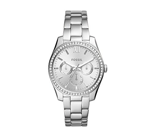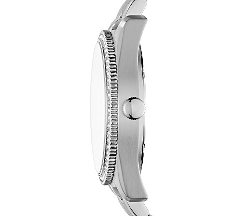 Pave stones trim the bezel of this chronograph style bracelet watch from Fossil, making it a sparkling choice for any occasion.
