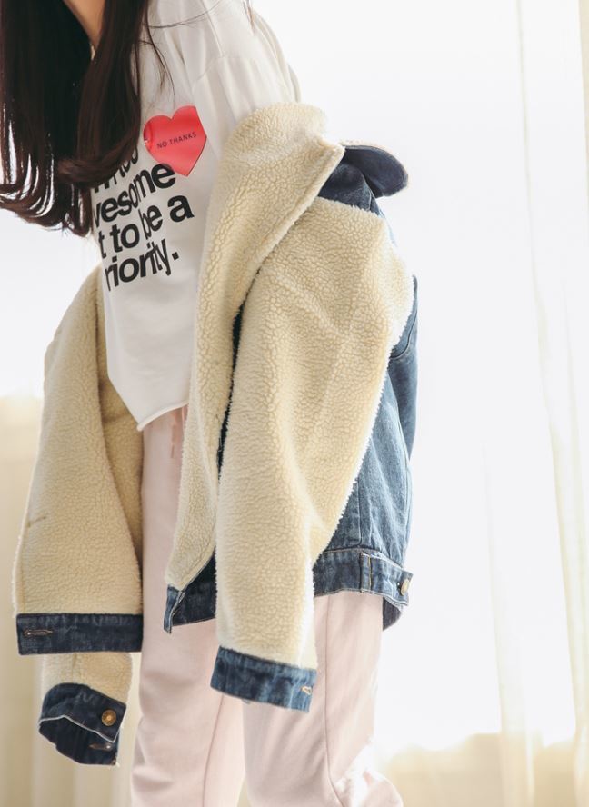 襟元や袖口のボア素材がお洒落度高めの1枚ですね。