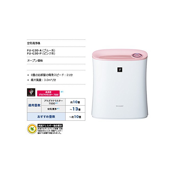 샤프 공기 청정기 플라스마(plasma) 클러스터 탑재 10다다미 타입 핑크 FU-G30-P