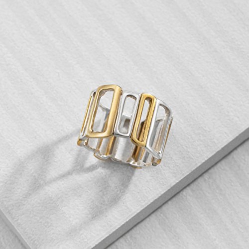 -. Feature : Go bare bones in the Framework Ring with alternating sterling silver and brass hollowed rectangles to show off your cool-girl minimalist style / IN THE MIX: Gone are the days of sticking to one material or color when it comes to your daily jewelry ensemble! Simple, sterling silver staples are given a dash of contrasting style with brass accents, making these styles your go-to accessories that match anything in your closet. From sleek necklaces perfect for layering to bold, shoulder-sweeping earrings and statement rings, the coveted mix-metal look is easier than ever to achieve. / BRASS & STERLING SILVER: The combination of copper and zinc gives brass a soft, yellow glow and its malleable nature makes it an artisan favorite; when this golden-hued metal is used alongside Silpada's signature metal of sterling silver, it creates breathtaking antiqued or mixed-metal looks / Ring face measures 1/2 inches in width / Imported