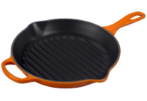 From savory vegetables to mouthwatering steak, chicken and shrimp, the Round Skillet Grill gives all the delicious flavor of an outdoor grill, then presents foods beautifully at the table. High ridges allow excess fat and grease to drain and spouts on two sides allow for drip-free pours.