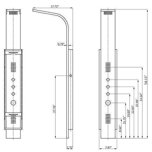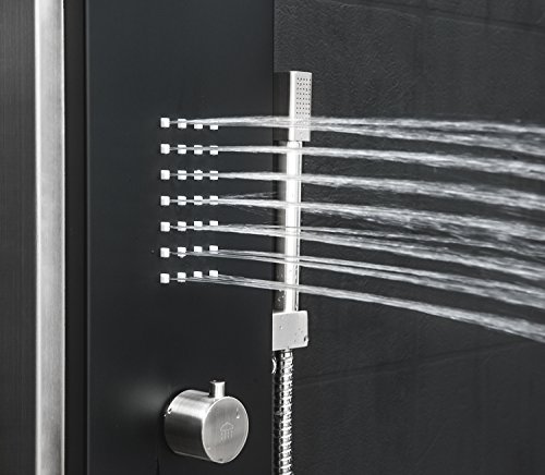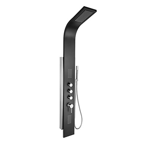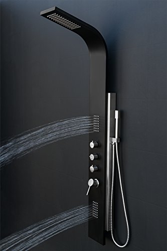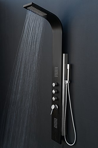AKDY AZ-9878A 58" Stainless Steel Rainfall Shower Panel Tower System with Simultaneous Overhead Rainfall, Body Massage Jets and Handheld Shower, Black