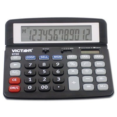 12 digit calculator is perfect for desktop use either at home or in the office. Features an extra Large LCD tilt display. Cost/sell/margin keys make for quick and easy calculations (simply enter two variables and the third automatically appears). other functions include: mark up Key, automatic tax keys, selectable decimal and rounding slide switches, square root Key, Grand total Key, percent Key, change sign Key, backspace Key, 3 Key independent memory, automatic power down, and Hybrid power (solar/battery backup). 2 year manufacturer's standard warranty.Feature