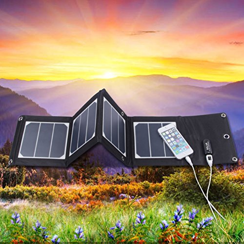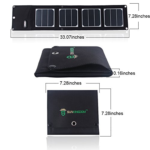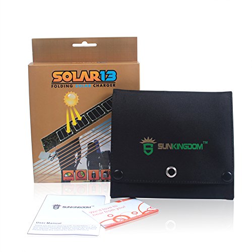 SUNKINGDOM™ 13W USB Solar Charger with High-efficiency Portable Foldable Solar Panel PowermaxIQ Technology for iPhone, iPad, iPod, Samsung, Camera, and More (Black)
