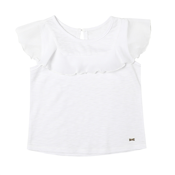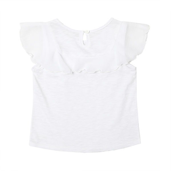 면티셔츠이면서도 블라우스 느낌으로 코디되어 러블리한 분위기를 연출할수있는 티셔츠입니다.