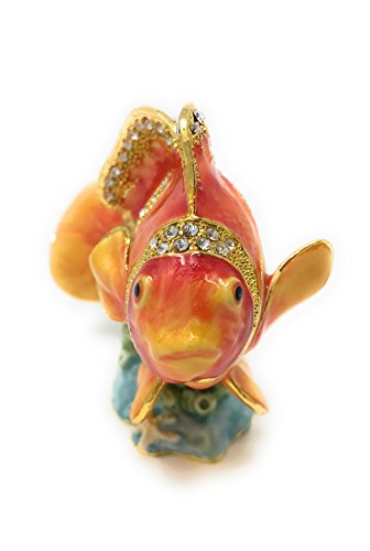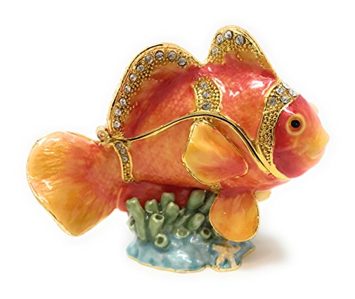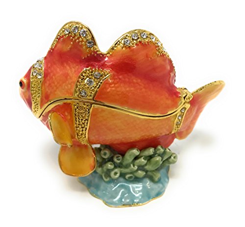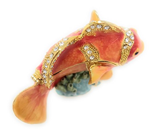 Enameled Orange Clown Fish Trinket Box by Kubla Craft, Accented with Austrian Crystals, 2.5T