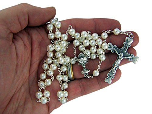 -. Binding : Jewelry -. Brand : First Commuion Jewelry -. Color : Silver -. Department : unisex-child -. Feature : Rosary - 24 inches Long / Bead - White Glass - 5mm / Centerpiece / Crucifix - Silver Tone Base Metal / Comes Gift Boxed -. Label : Lumen Mundi -. Manufacturer : Lumen Mundi -. Model : 108-16-6726 -. MPN : 108-16-6726 -. PartNumber : 108-16-6726 -. ProductGroup : Jewelry -. ProductTypeName : FASHIONNECKLACEBRACELETANKLET -. Publisher : Lumen Mundi -. Studio : Lumen Mundi -. Title : First Communion White Rosary Bead Necklace with Chalice Centerpiece and Heart Detailed Crucifix, 24 Inch