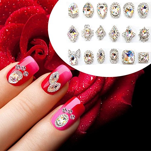 JIEPING 18 Pcs/Bag Rhinestone Nail Art Decoration Glitter Charming Shiny Faux Gem 3D DIY Nail Art Tips