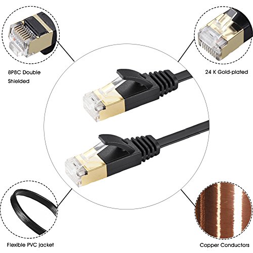 Cat7 Ethernet Cable 2 PACK 3 FT Flat Networking High Speed Patch Cable for Modem Switch Gaming PS3 PS4 IP Camera 3 FT2 Black