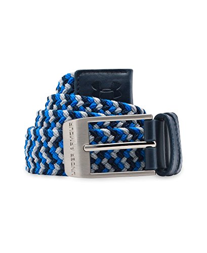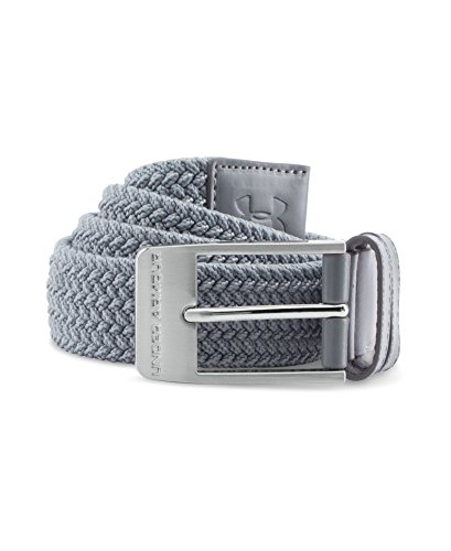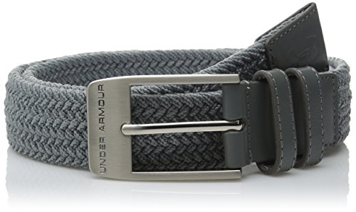 Stretch-fit woven webbing. Premium leather belt tip. Fits Men's waist sizes 30-42. Belt is made of polyester.