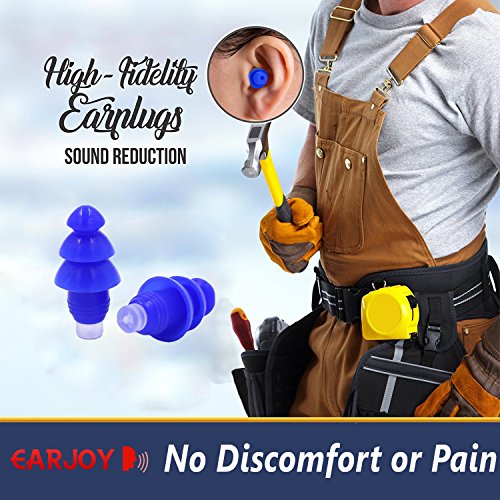 Hearing Protection Earplugs By EarJoy - Earplugs For Sleeping/Swimming ,High Fidelity Ear plugs , Noise reduction , for Shooting, Travel, and Concerts. Reusable Comfortable Silicone .
