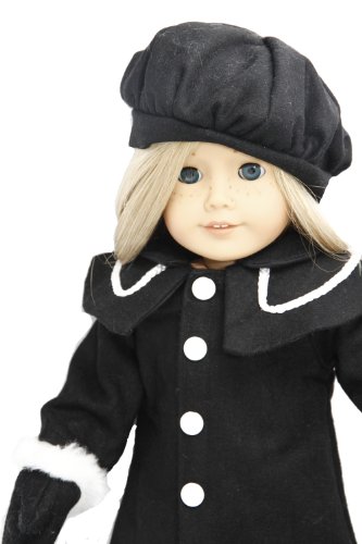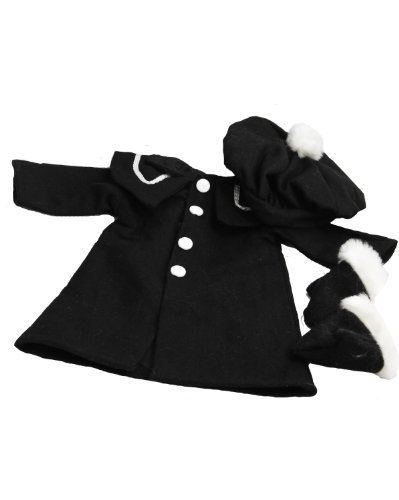Studio : Buys By Bella Publisher : Buys By Bella Binding : Toy Product Description Warm black wool winter coat features a white robe trimmed collar and four shiny white buttons. The coat velcros down the front for proper closure. The matching hat has an elastic strap to secure under the chin. A prominent white pom-pom sits on top. Also included are matching mittens trimmed with a white fur top. 0