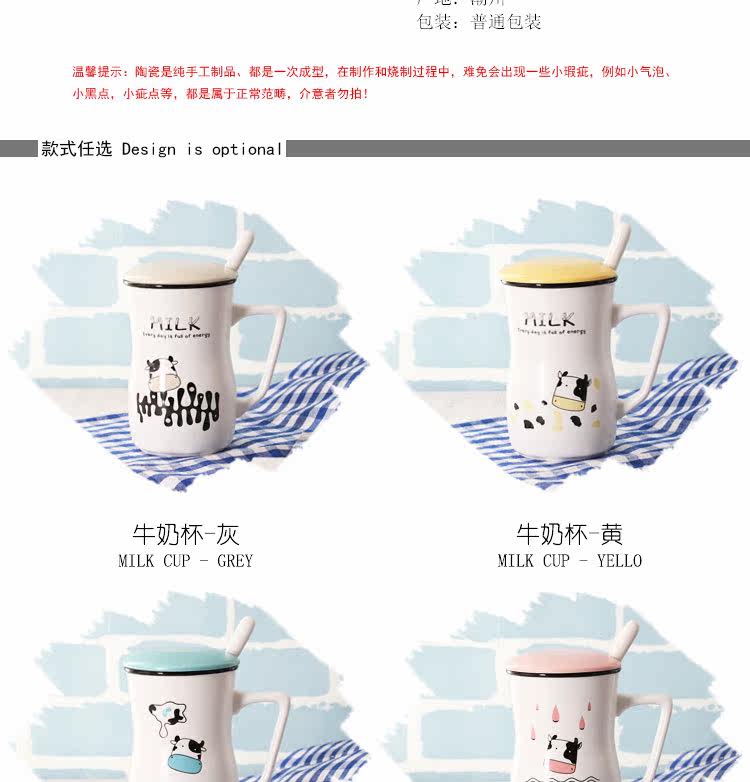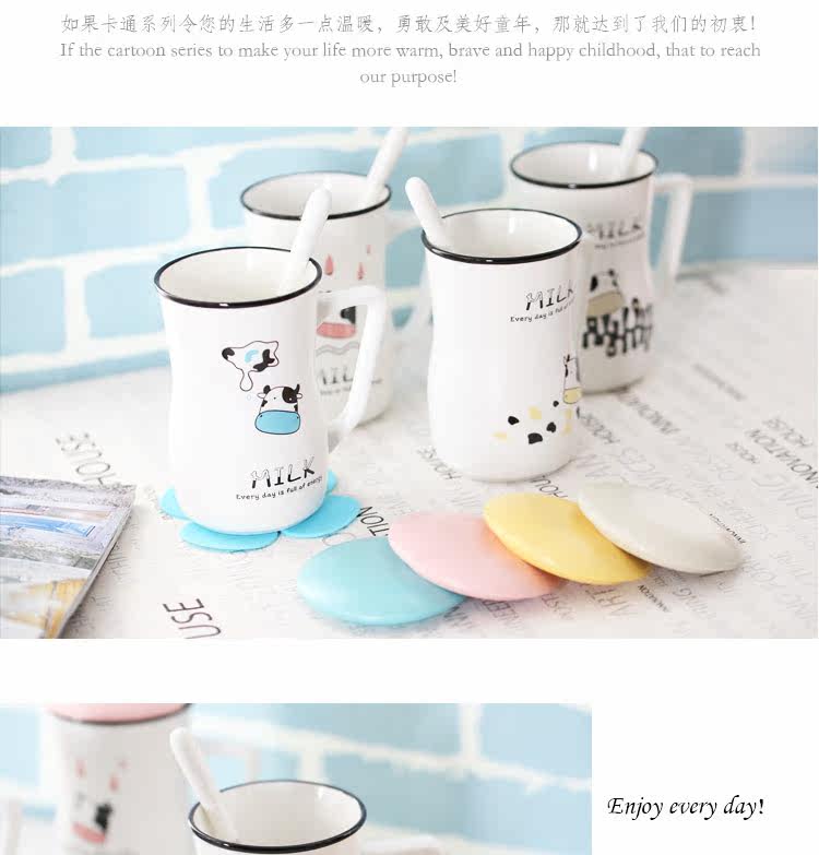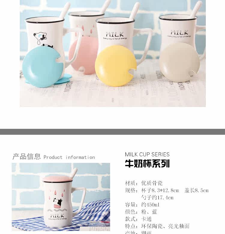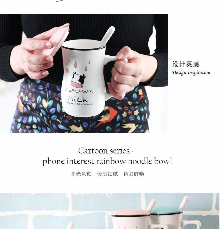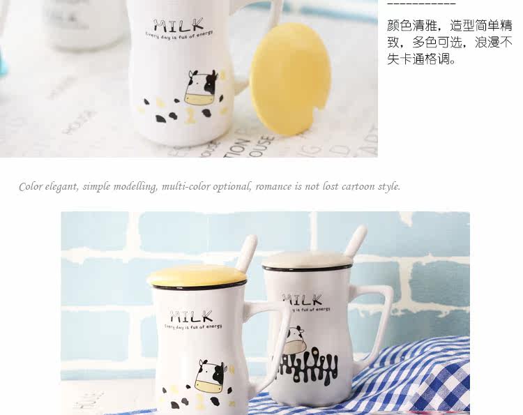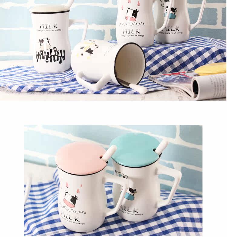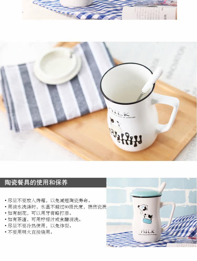 可爱创意卡通陶瓷马克杯简约韩版小清新情侣牛奶杯咖啡杯带勺带盖