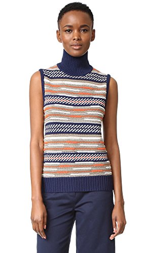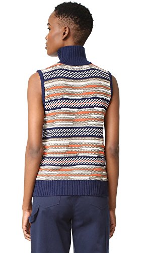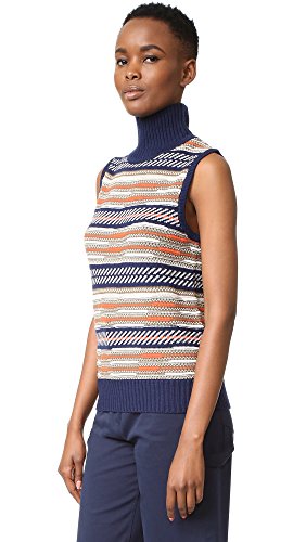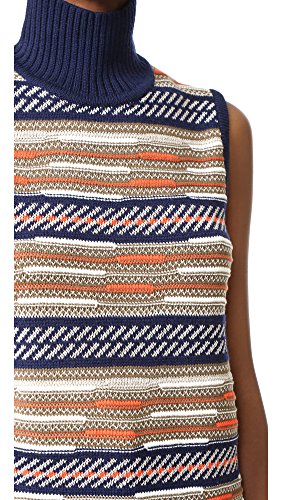 This turtleneck DVF sweater is detailed with bold, mismatched patterns. Solid ribbing at edges. Sleeveless.