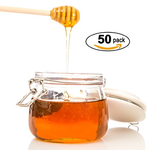 Honey Dipperz 50 PACK - 6" Inches Long (16cm) Wooden Honey Dipper Drizzler Stirring Stick, Spoon Rod Muddler Dispense, Great gift for Parties, Wedding, Baby Showers