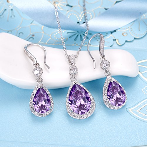 -. Title : EleQueen 925 Sterling Silver Full Cubic Zirconia Teardrop Bridal Pendant Necklace Hook Dangle Earrings Set