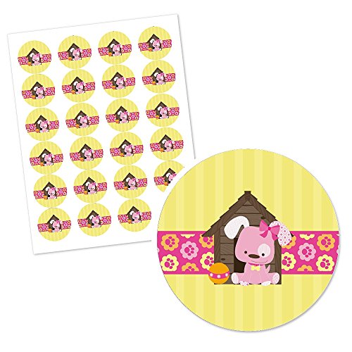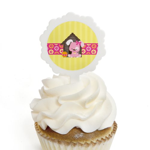 Girl Puppy Dog - Cupcake Picks with Stickers - Baby Shower or Birthday Party Cupcake Toppers - 12 Count