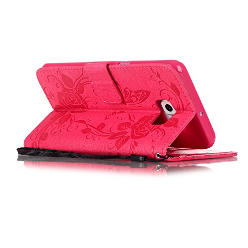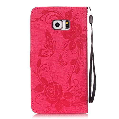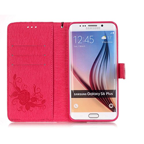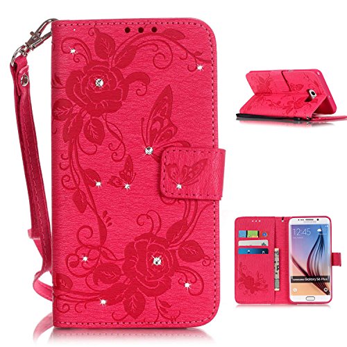 Galaxy S6 Edge Plus Case, Samsung S6 Edge Plus Case, LW-Shop(TM) Leather Wallet Case, Flip Case with Stand & Credit Card Holder Slots [Magnetic Closure] Cover with Rose Pattern(Bling/Light Red)