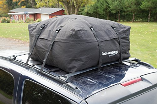 The Advantage SportsRack SofTop Cargo Bag allows you to utilize your vehicles roof rack to get full use out of your vehicles travel space. You will have 13 cubic feet of storage space to haul extra stuff anywhere you go. Measuring 38" x 38" x 15" the SofTop easily attaches to a standard roof rack with 8 tie down straps. Bag is made from durable water and weather resistant 600 Denier coated polyester. The #10 2-way Zipper runs on three sides of the bag allowing easy access to your cargo from any side of the vehicle. Try using the SofTop for traveling, camping, carrying sports equipment or when you just need some extra leg room in the vehicle. Easy to install and remove, it folds flat for easy storage with included storage bag when not in use.Feature