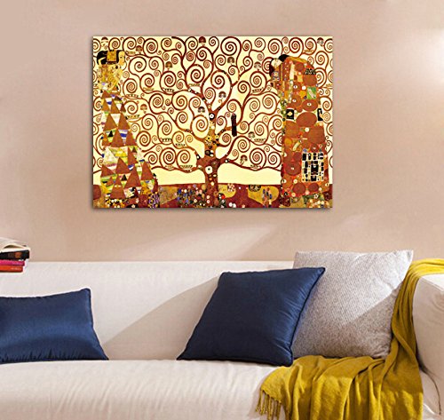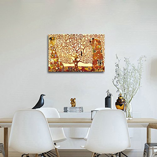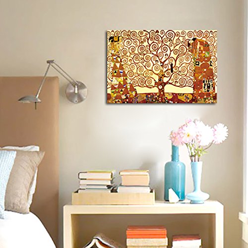 -. Title : Wieco Art - Tree Of Life Canvas P.R.Int By Gustav Klimt, Oil Paintings Reproduction Giclee Artwork for Wall Decor, Stretched and Framed Art work, Modern Canvas Wall Art for Home and office Decoration Landscape Picture P.R.Int on Canvas Art KLI-0001 24 by 36 inch