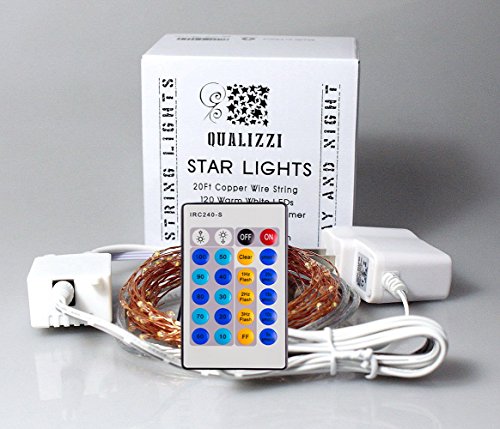 Qualizzi Starry String Lights with REMOTE CONTROLLER /WIRELESS ON-OFF SWITCH / DIMMER / FLASHING LIGHT - Best 120 Warm White LED's on a Flexible Ultra - thin Copper Wire 20ft - Amazingly Bright Micro LEDs. Create Mesmerizing Hanging Garlands. Wrap Around Your Backyard Christmas Tree. The Led Strings for the most Unique Christmas Decorations. Add One Set or More to your Teens' Bedroom to Ting it all with a Light Fairy Effect. An Elegant Touch to Your Home All Year