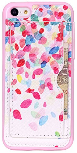 iPhone 5C Case AIYZE TPU Back Protective Cell Phone Cases + Stand + Credit Card Slots Holder Premium PU Leather Multi-functional (Black Eyes Don't Touch My Phone)