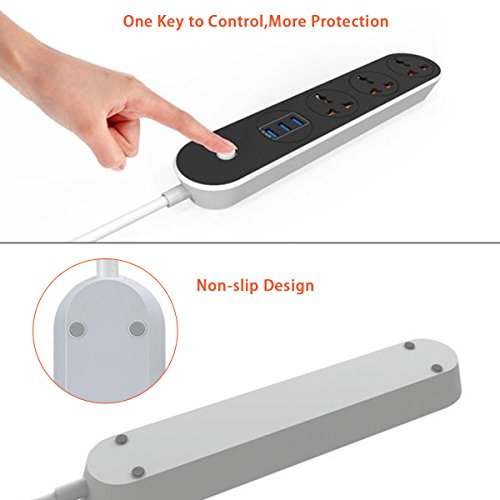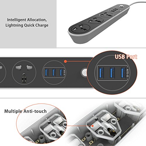 - Multiple anti-touch Protection -- Power strip with safety door,which is designed for children. It will automatically to cover the jacks when you pulling out plug, Preventing children from electric shock effectively by inserting fingers or other objects.