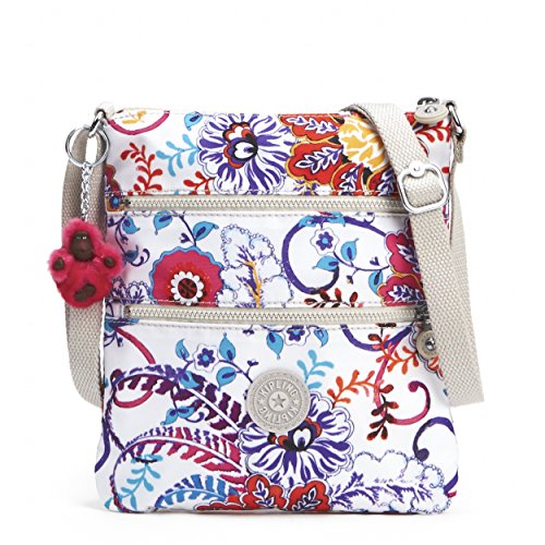 Adjustable crossbody strap with 12"-24" drop Top zip closure. Interior features 1 zip pocket Exterior features silver-tone hardware and 2 zip pockets 8" W x 9" H x 1/2" D Brand : Kipling EAN : 0882256262223