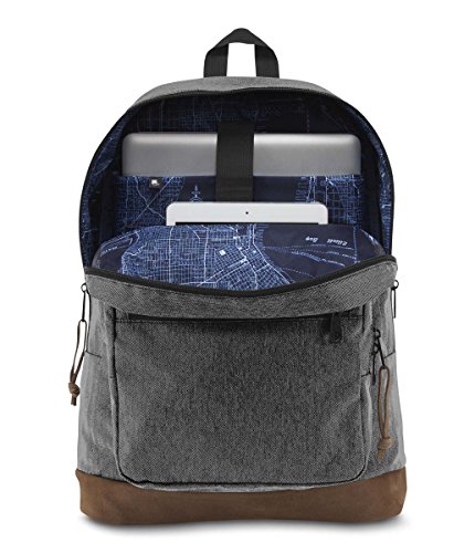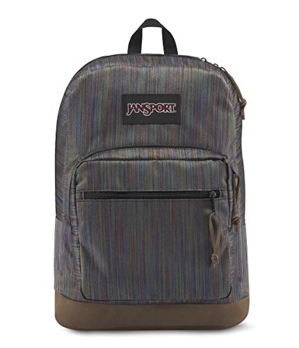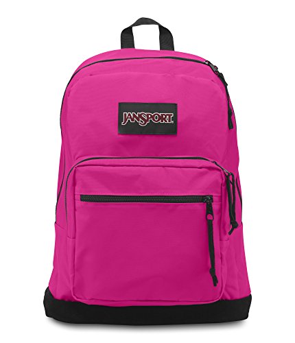 JanSport Right Pack backpack. JanSport patch applique at high front. Front pocket offers interior organizer. Suede bottom. Spacious main compartment with internal laptop sleeve fits 15" laptop. JanSport logos embossed on zipper pulls. Lightly padded back panel. Padded and adjustable shoulder straps. Approx dimensions: 18" x 13" x 8.5"(27cm x 28cm x 2.5cm). Imported.Feature