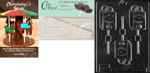 Cybrtrayd 'Trick or Treat Bag Lolly' Halloween Chocolate Candy Mold with 50 4.5-Inch Lollipop Sticks and Chocolatier's Guide