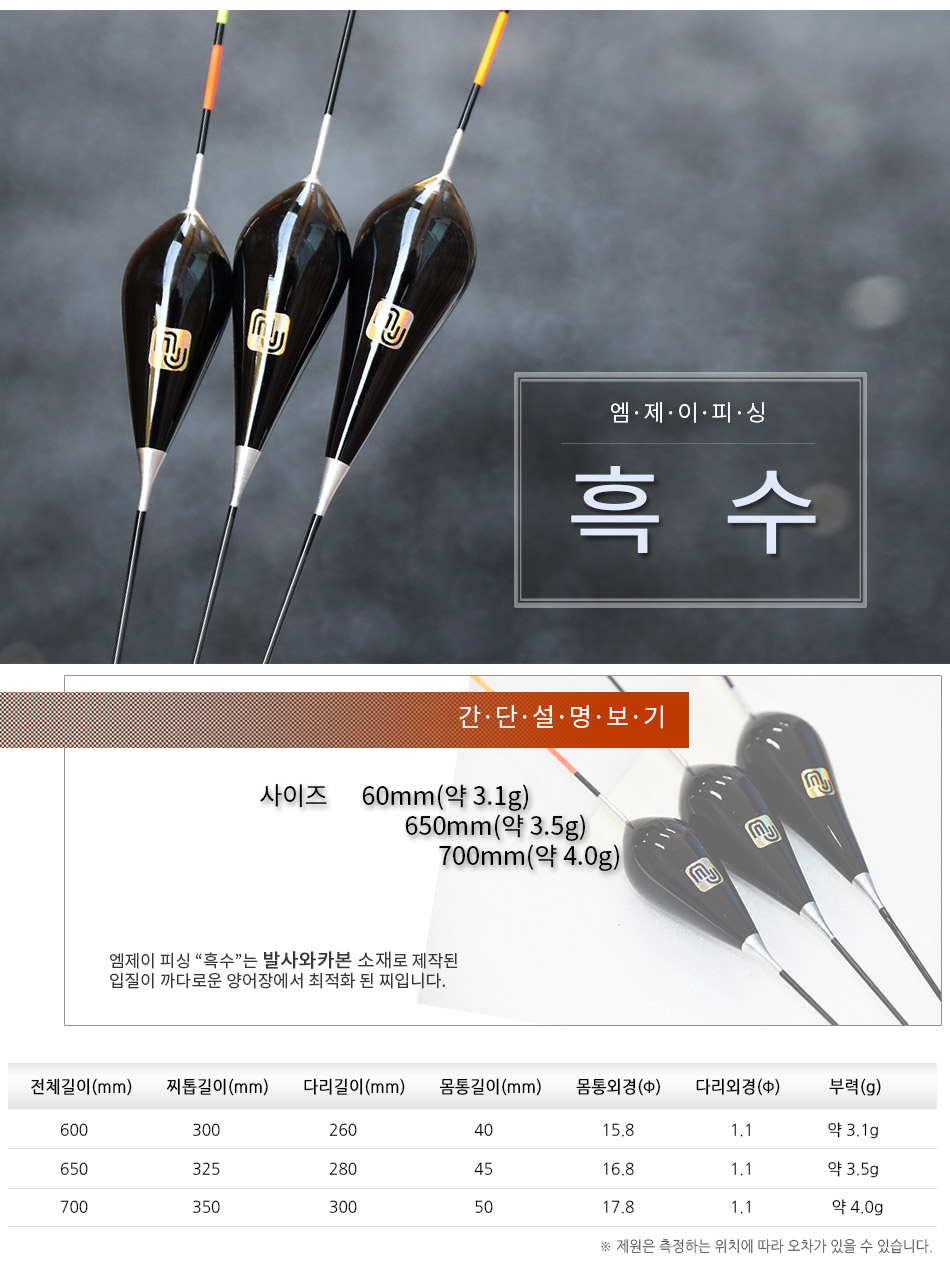 엠제이피싱 흑수(60,65,70cm) 민물낚시찌
