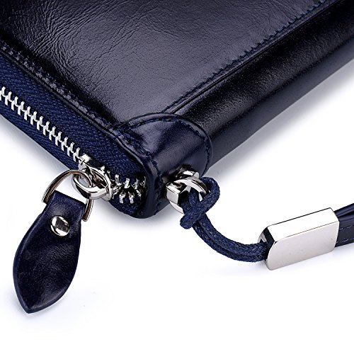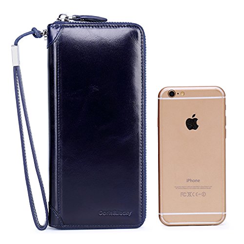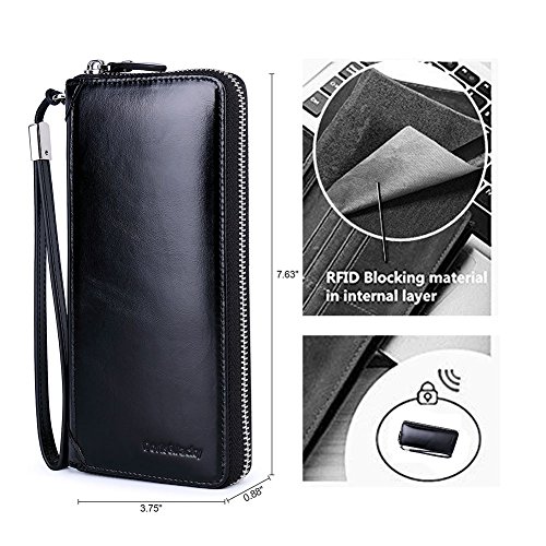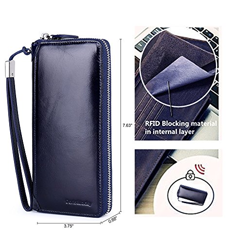 -. Feature : Material: Imported italian soft leather,beautiful scrumptious colors,clear texture after waxing process,luxury touching and feeling. Even and straight stitching,nicely dyed,silver strong hardwards with a REFLECTIVE surface,smooth zipper,thick and durable wrist strap. Looks even better after using for a long time / Safety & Security: RFID Blocking Wallet for safety reasons. Equipped with advanced military grade proP.R.Ietary blocking material UNDER the leather surface,engineered specifically to block 13.56 MHz or higher RFID signals and protect the valuable information stored on RFID chips from unauthorized scans. You will feel more secure travelling with this / Large capacity: 3 CASH HOLDERS,well suited to 3"*6" checkbook and iphone 8/8 plus. Can accommodate a 4.92"*3.46" passport,but slightly small. 1 ZIPPER POCKET,it's perfect for coins,change,or other important things.8 CARD SLOTS, licence,credit cards and health insurance cards can be slided in and out easily,great for a owner who needs to keep lots of cards on hand.and 2 RECEIPT POCKETS / Wallet dimensions:7.63"L*3.75"W *0.88"H,it is just the size for a wallet you can simply hold it on hand or put it in bag. Weights 0.42 pounds/6.72 ozs,not heavy or bulky if you want to keep your handbag light and slim,fit for iPhone 6S/7 Plus with a phone case as well / Guarantee & Packaging: We choose 100% full inspection for our wallet,If you're not completely satisfied with our italian leather Wallet,then we will refund your entire purchase or free replacement, whichever you prefer. Came in a black&orange luxury hard gift box with a white velvet fabric beam pocket bag,a gift you don't even have to wrap it for mom,daughter,wife,or friends on Christmas Day