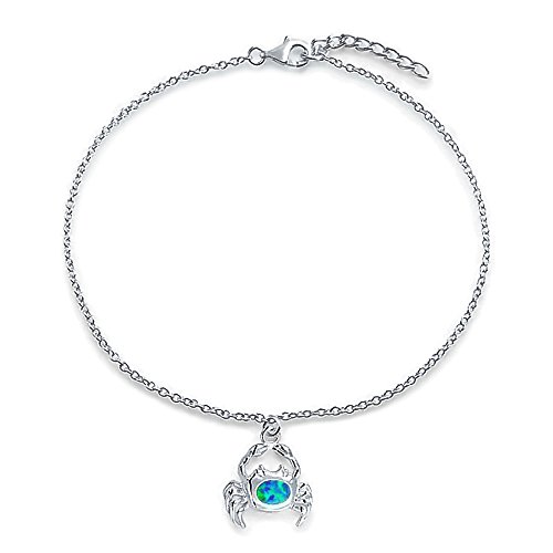 -. Title : Bling Jewelry Sterling Silver Anklet Synthetic Blue Opal Nautical Crab 9in